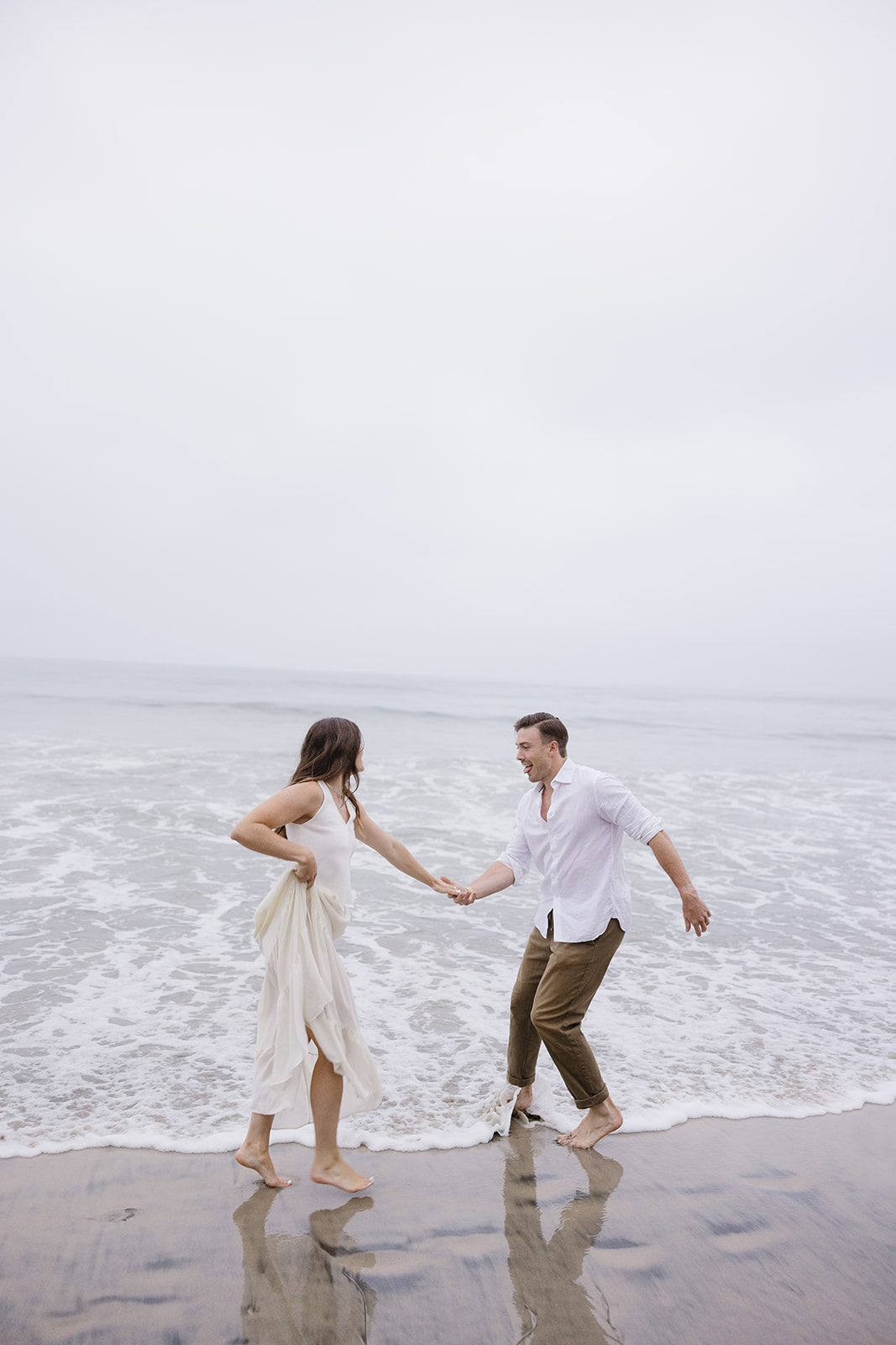 I love capturing California engagement photos at this time of day. In places like Encinitas and the San Diego coastline, that early-morning quiet lets couples fully relax and lean into each other without the crowds or distractions. For Emily and Pat, the cloudy August sky only added to the atmosphere and made every moment feel intimate and intentional. The truth is, great photos aren’t about perfect weather or a blazing sunset; they’re about connection. When you’re present with each other, even a gray sky feels golden.